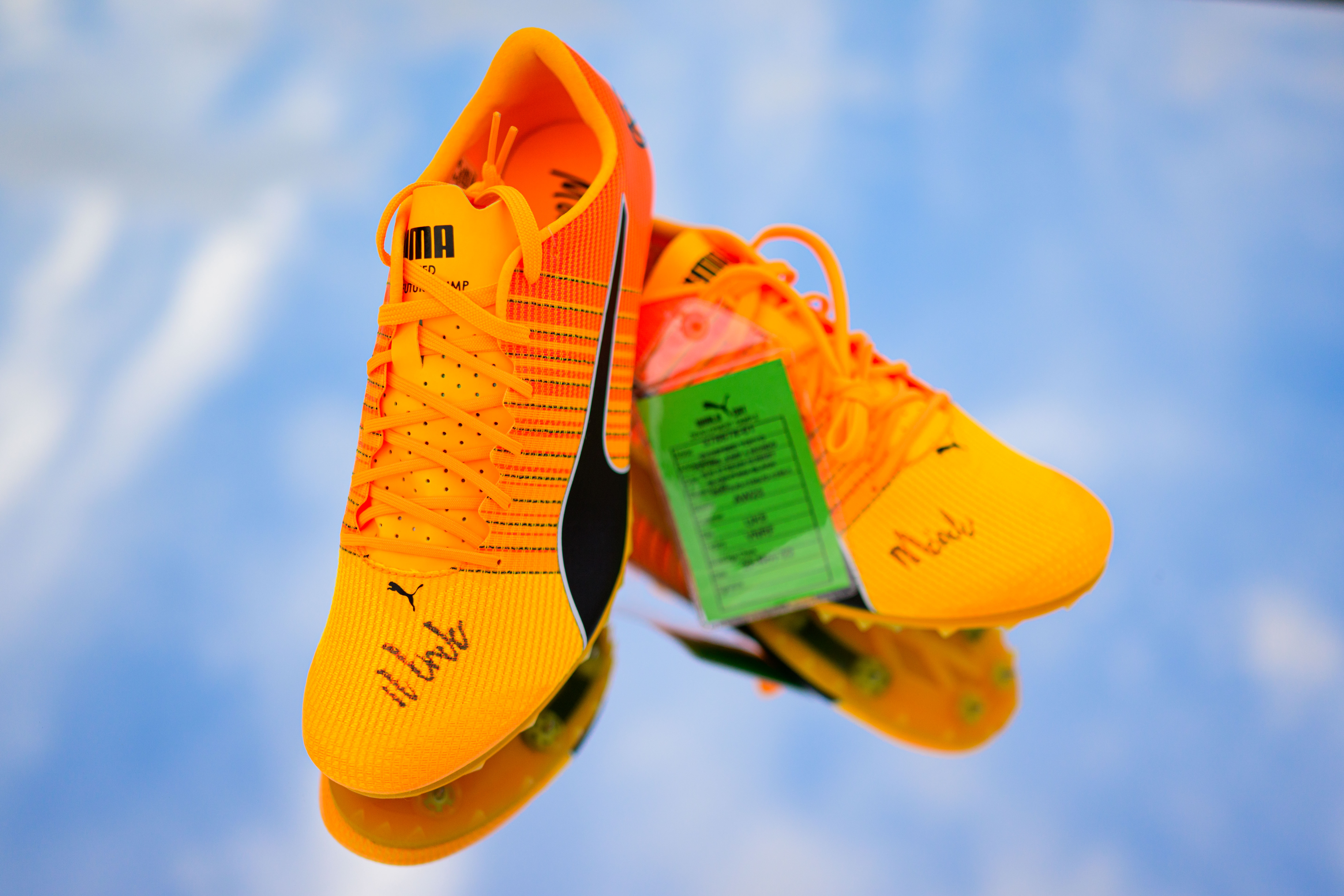 Authentic track spikes signed by world and Olympic champion Mondo Duplantis, a rare piece from one of the sport's greatest athletes.