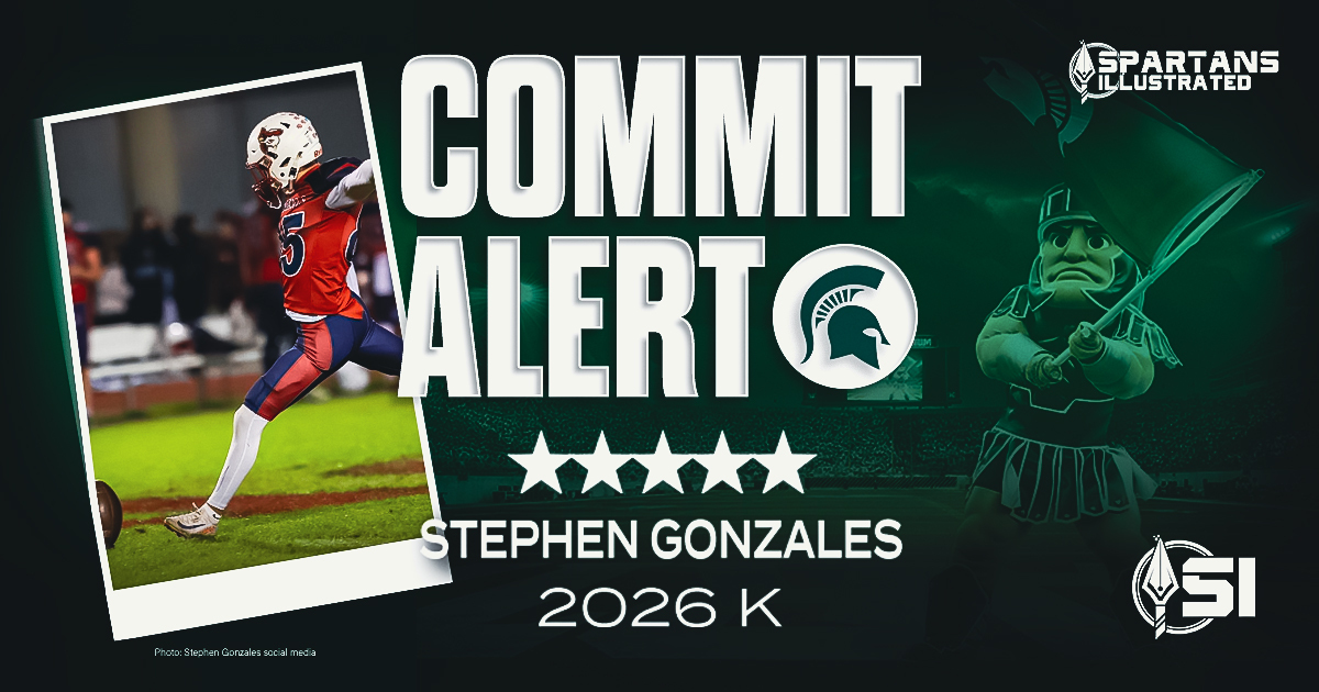 Michigan State has received a commitment to its class of 2026 from Kohl's five-star kicker Stephen Gonzales. MSU is welcoming Gonzales as a scholarship player, sources tells Spartans Illustrated.