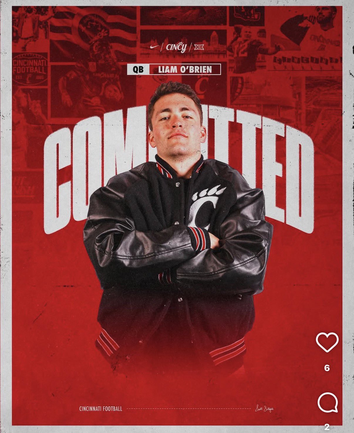 Earlier today, the Cincinnati Bearcats got a commitment from Penn transfer quarterback Liam O'Brien. O'Brien has one year of eligibility remaining and will provide depth in the quarterback room that has JC French IV (transfer), Samaj Jones and a true freshman.