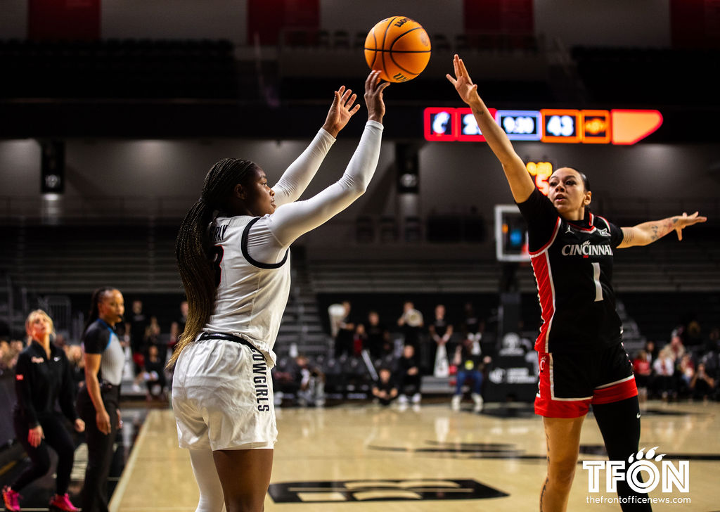 Senior Mya Perry led the Bearcats with 21 points and eclipsed the 1,000-career-point mark. She knocked down four three-pointers, including the milestone basket late in the fourth quarter. Perry has now scored in double figures in all 13 games this season, the longest season-opening streak by a Bearcat since 2012-13.